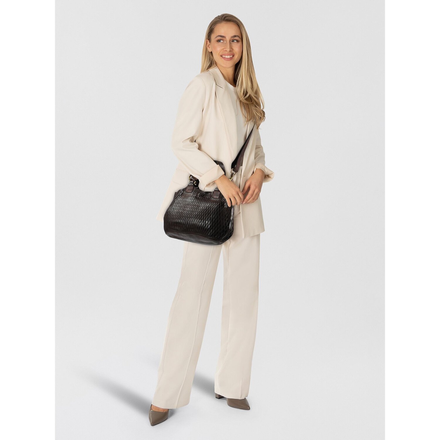 Die Campomaggi Cosima Shoppertasche besticht durch ihr klares Design und hochwertige Ausführung. Gefertigt aus robustem Leder, bietet diese Tasche eine bequeme, vielseitige Tragemöglichkeit dank des verstellbaren Umhängeriemen und eines Medium-Schulterbandes. Die perfekte Kombination aus Stil und Funktionalität, mit einem einfach zugänglichen Druckknopfverschluss für bodenlose Sicherheit und Effizienz. Auf der Innenseite der Tasche finden sich wertvolle Erweiterungen wie das praktische Reißverschlussfach. Damendesign verliert keineswegs an Qualität und Kompaktheit. Verwöhnen Sie sich mit einer Tasche, die genauso dynamisch ist wie Sie. Erleben Sie den Komfort und die Einzigartigkeit der Campomaggi Cosima Tasche jetzt selbst!