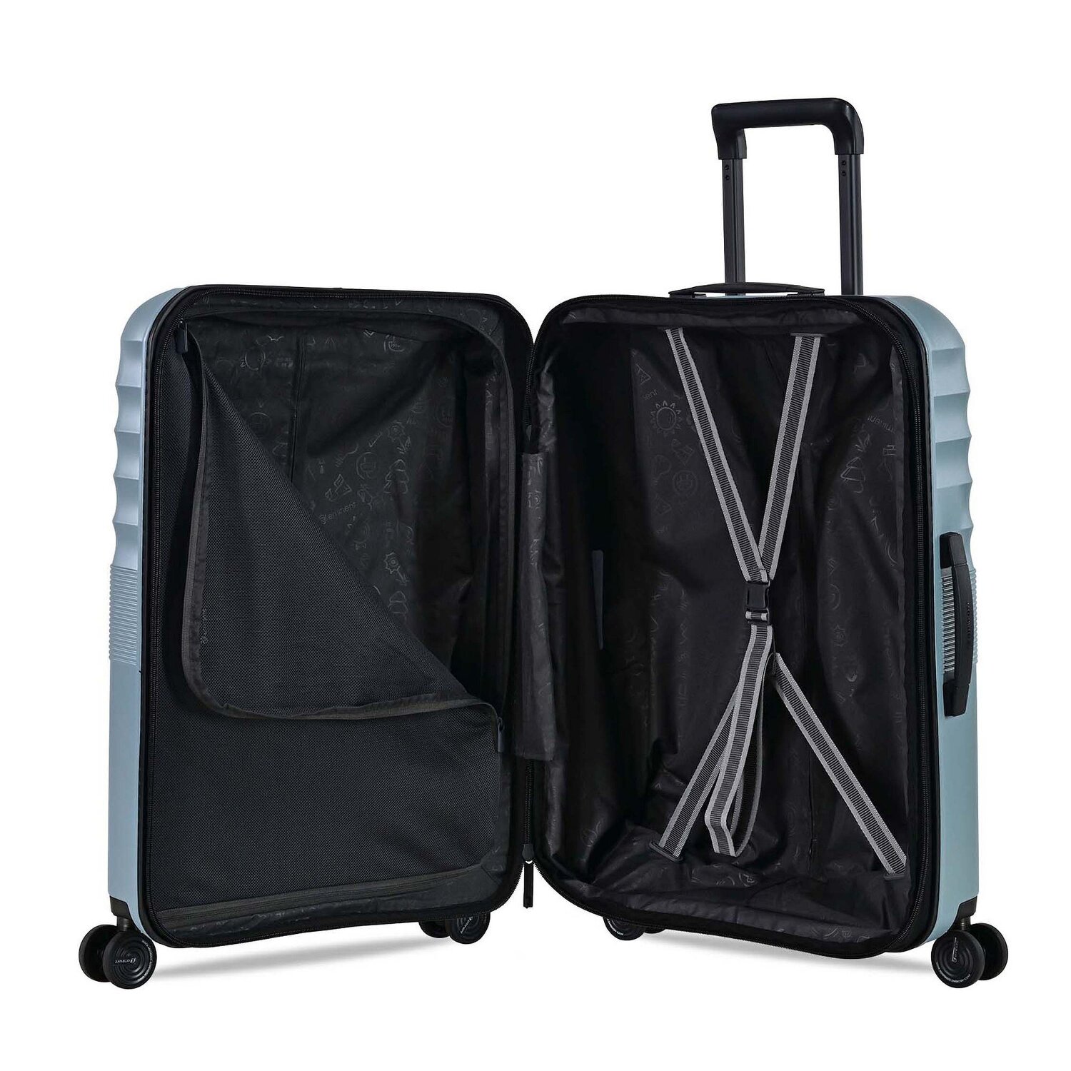 - Ausstattung: Wäschefach, Kreuzpackgurt, Dehnfalte, arretierbarer Griff