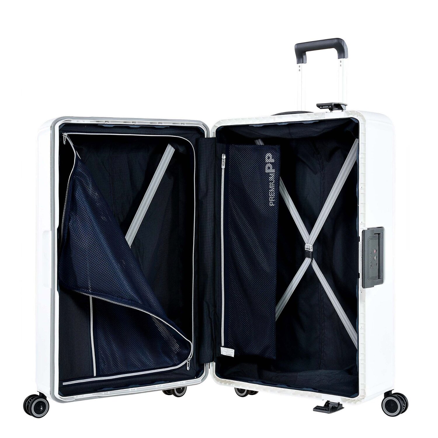 - Ausstattung: Wäschefach, Netzfach, Kreuzpackgurt, arretierbarer Griff