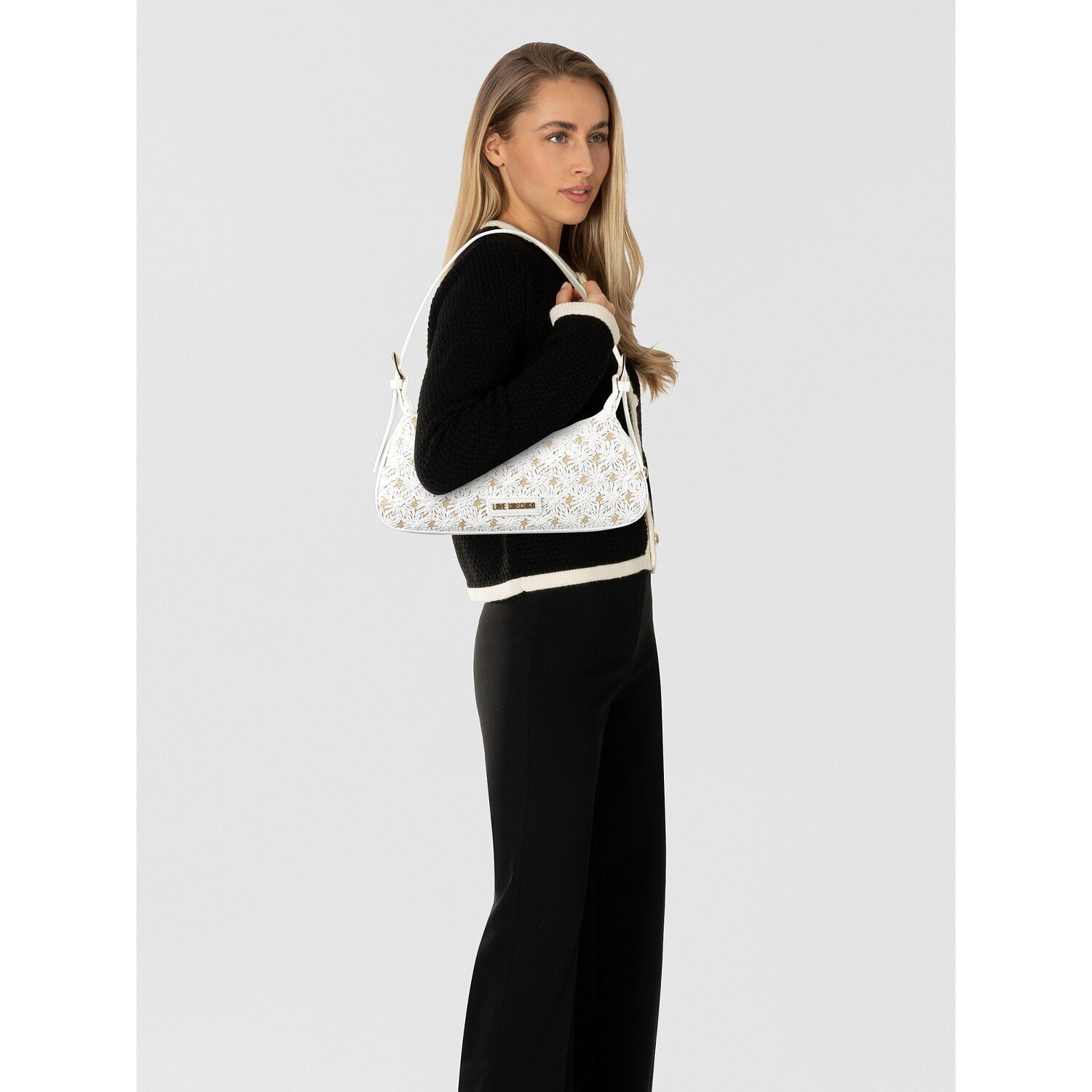 Mit der Love Moschino Schultertasche aus der Smart Daily Bag Kollektion unterstreichen Sie Ihren modernen und lebendigen Stil. Diese Dame hat es in sich! Aus PET gefertigt, punktet sie mit Beständigkeit und fühlt sich zugleich angenehm an. Im Inneren der Tasche entdecken Sie praktische Fächer, optimal um alle wichtigen Alltagsschätze zu ordnen und stets griffbereit zu haben. Das Highlight? Ihr Reißverschluss - so einfach zu öffnen und absolut verlässlich zum sicheren Verwahren Ihrer Wertsachen. Mit der mittellangen Umhängeriemen design, bietet die Tasche Tragekomfort und Vielseitigkeit. Worauf warten Sie? Steigern Sie Ihren täglichen Chic mit dieser Love Moschino Tasche.
