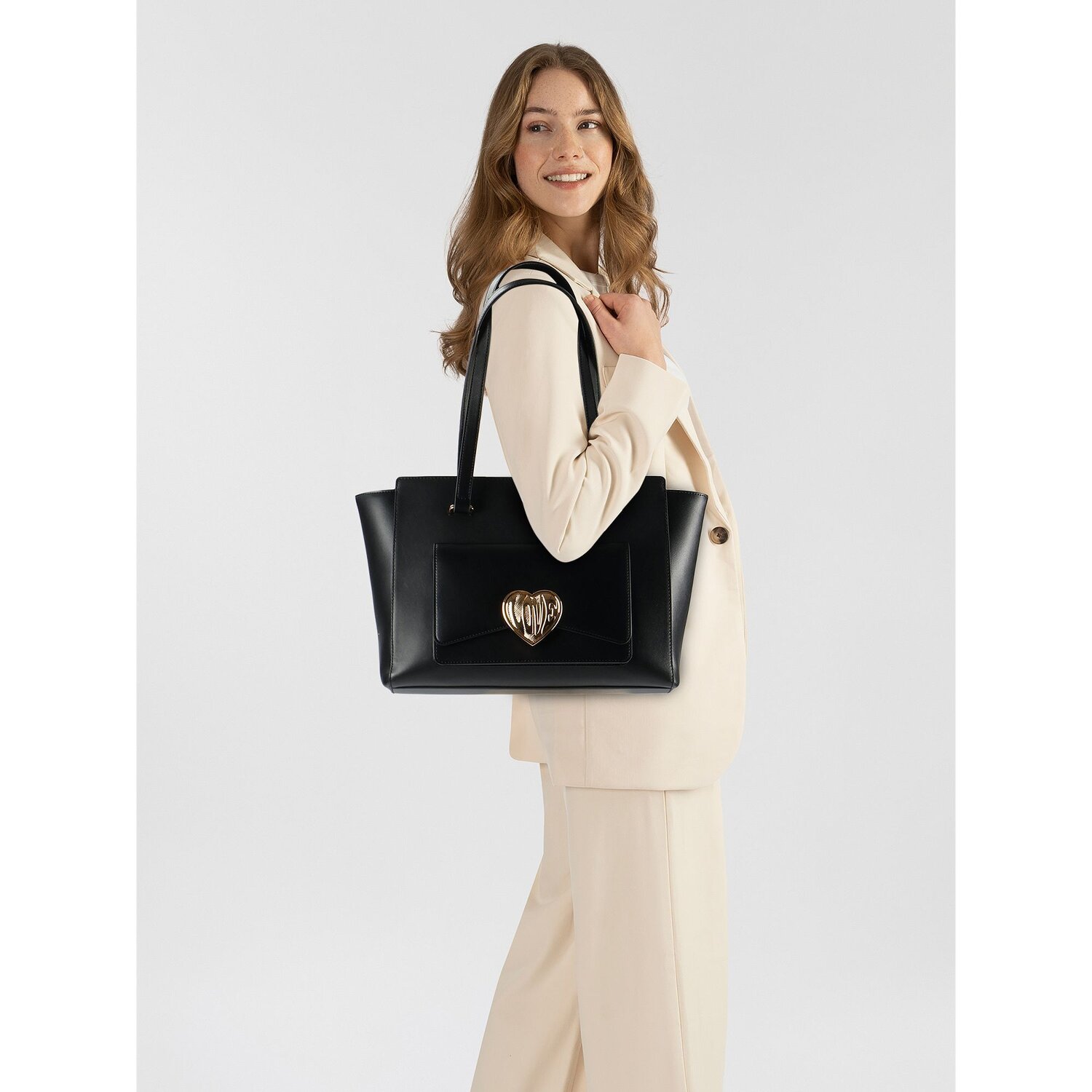 Love Moschino Victory Heart Shopper Tasche Leder 34 cm