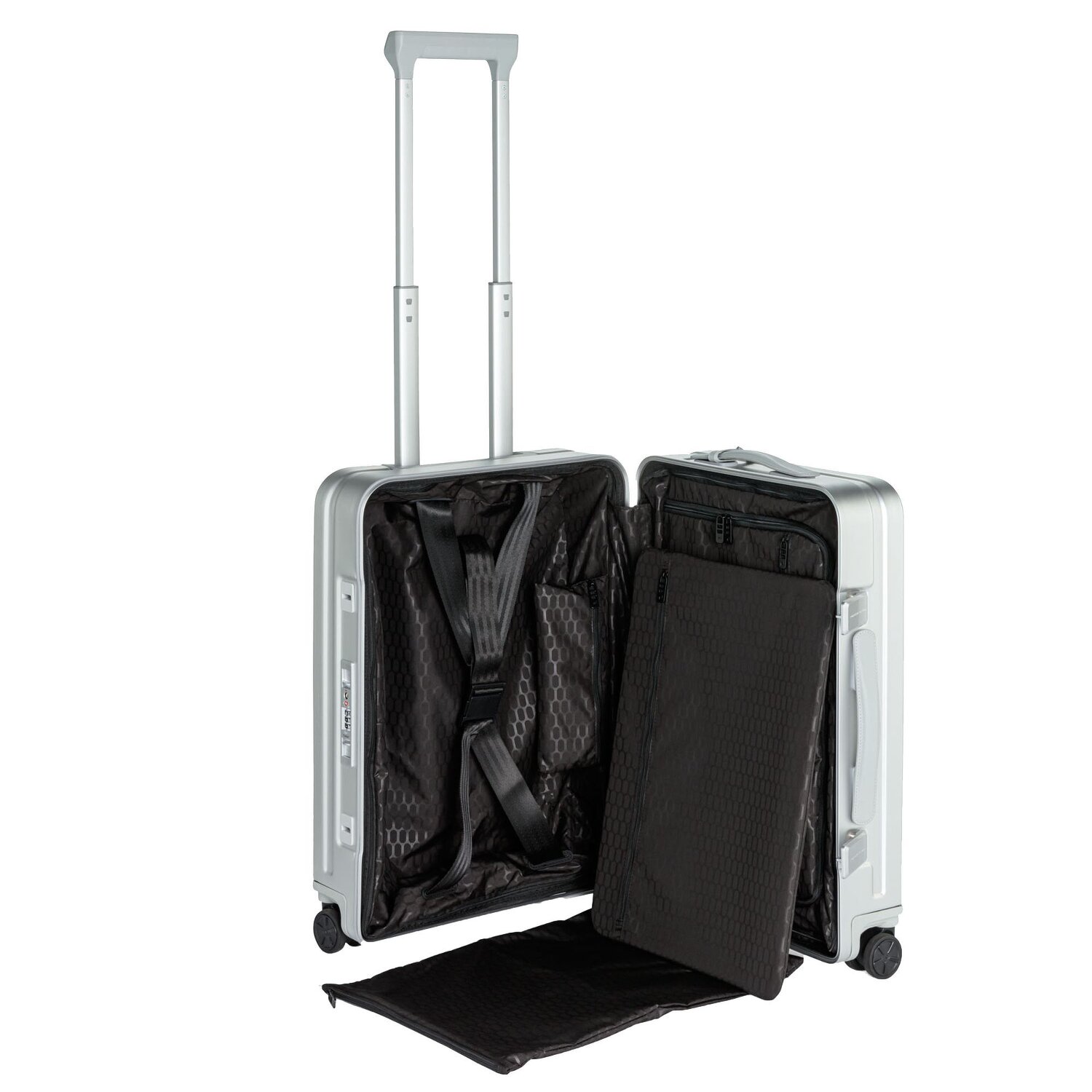- Ausstattung: Trenn-/Packplatte, Reißverschlussfach, Kreuzpackgurt, arretierbarer Griff